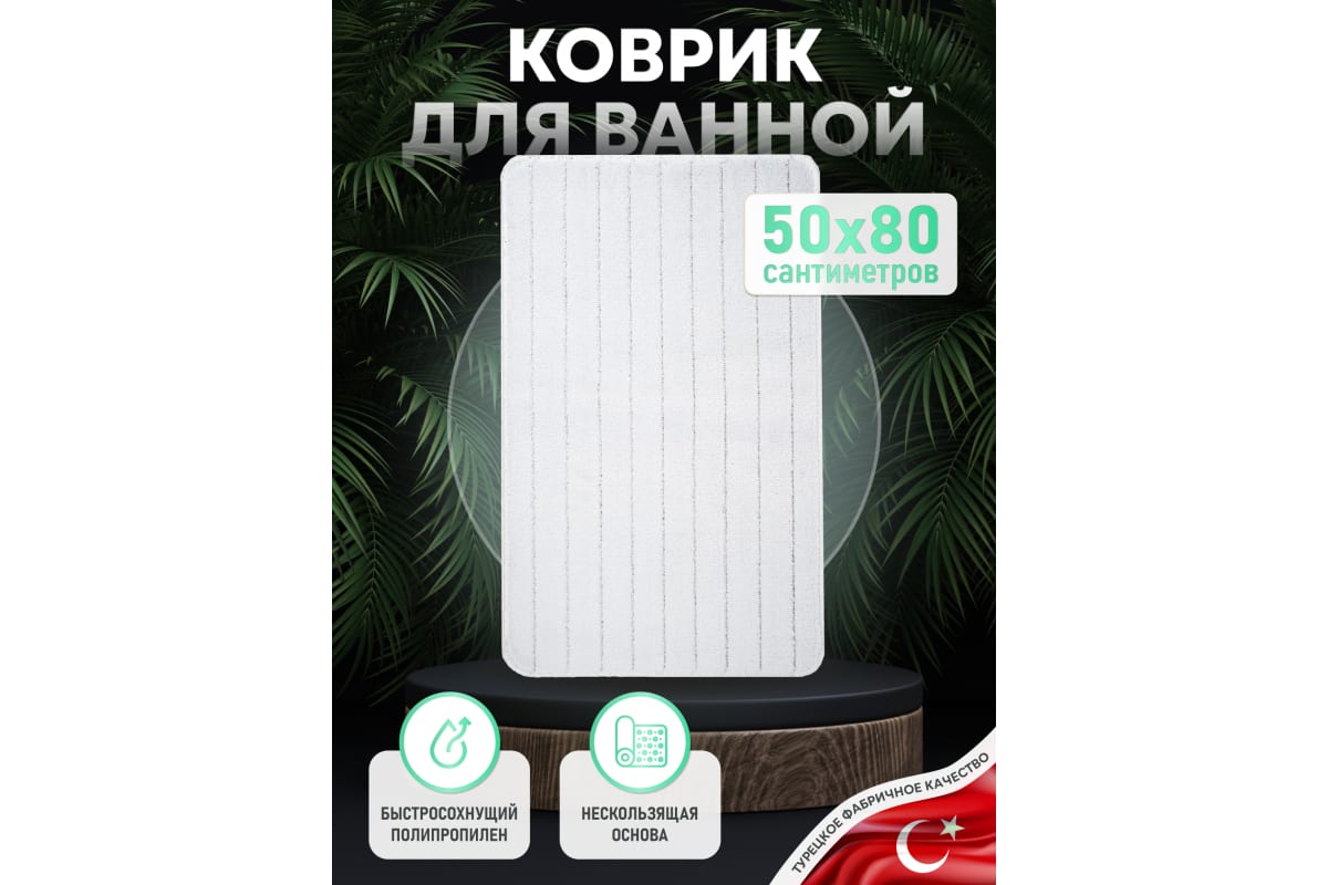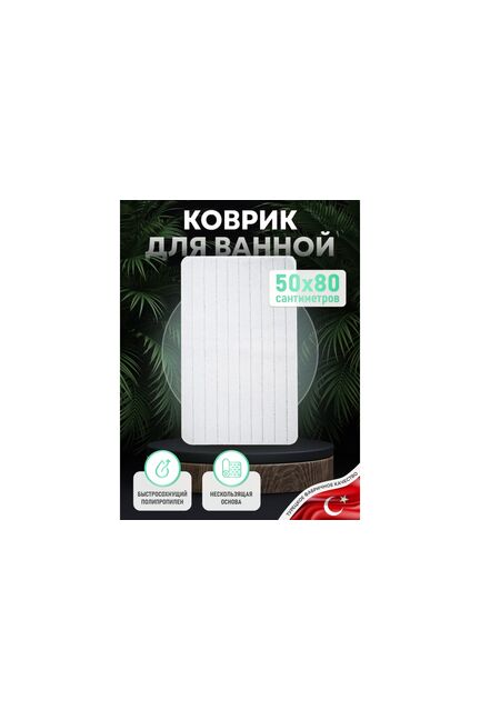 Материал: Полипропилен Цвет: Белый Производитель: Турция ДxШxВ: 800x500x4 мм Белый коврик 50×80 см из ПП: влагостойкий, гипоаллергенный, нескользящий, легко стирается и идеально подходит для ванной комнаты.
