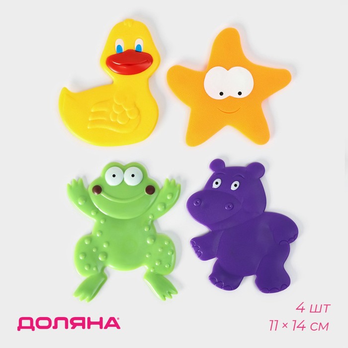 Набор ковриков д/ванной "Зоопарк" 11*14 см на присосках, детские, 4 шт 1022829 в пгт. Солнечный