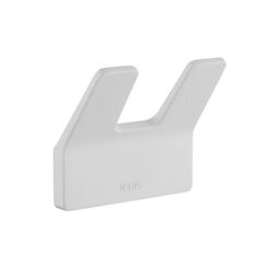 Белый матовый двойной крючок из прочного металла, устойчив к влаге, надёжен, отлично подходит для полотенец и одежды в ванной комнате.