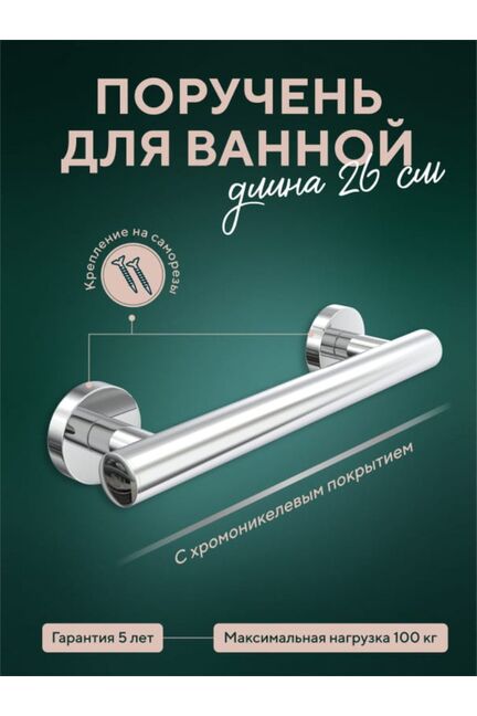 Надёжный и эргономичный хромированный поручень длиной 26 см незаменим для обеспечения безопасности в ванной комнате, облегчая подъем и защиту от падений людям любого возраста и физического состояния.
