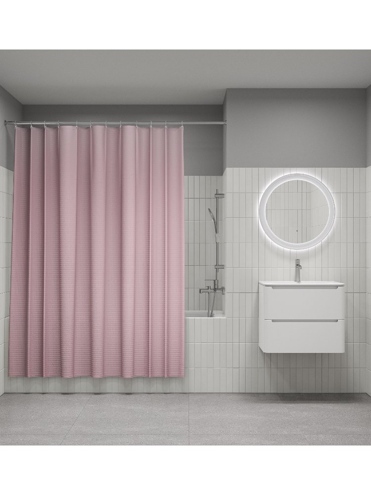 Освежите интерьер вашей ванной, добавив стиль и защиту от брызг с помощью функциональной и элегантной шторы нежного розового цвета. Она идеально подойдет для ванной комнаты в квартире, доме или гостинице, создавая уют и сохраняя чистоту помещения.
