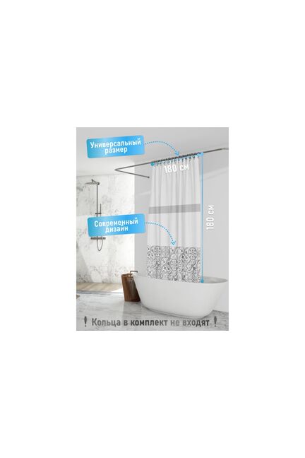 Штора д/ванной "Patchwork" 180*180см, полиэстер, белая FOR-PH-PATCH в Солнечный