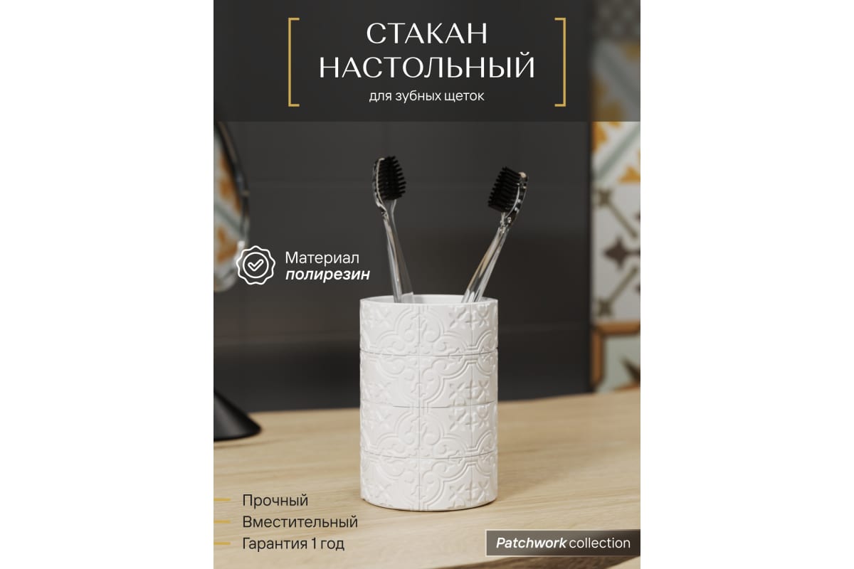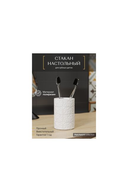 Стакан д/зубных щеток, полирезин, белый "Fora PatchWork" PCH044