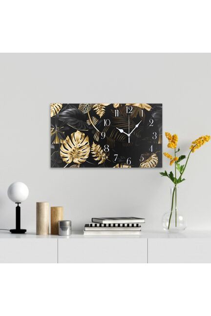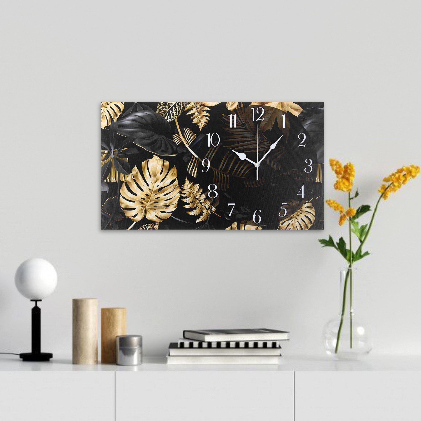 Настенные часы-картина 35×60 см, бесшумный механизм, влагостойкий МДФ, стильный дизайн «Листья» для дома и офиса, легко крепятся к стене.