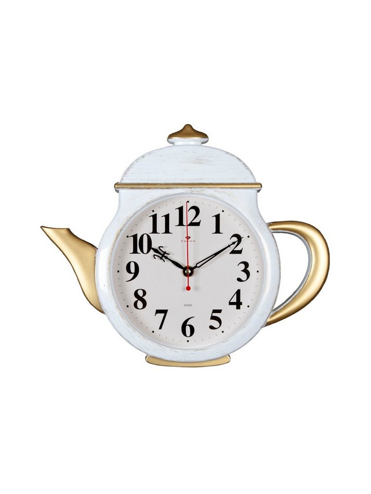 Часы настенные (29*34) "Чайник", корпус белый с золотом 3530-004 в Солнечный