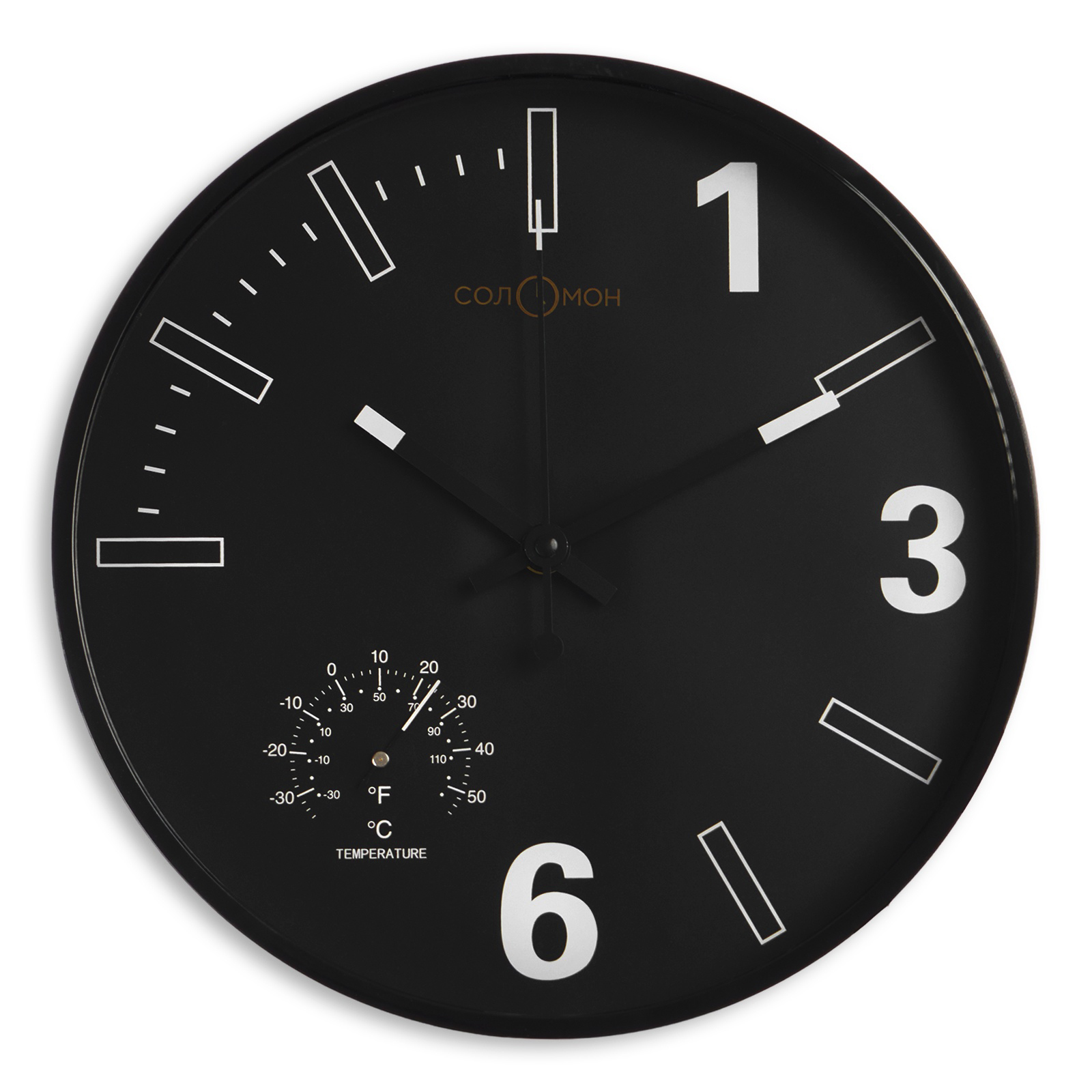Большие настенные часы с термометром, бесшумный механизм, диаметр 30 см, для дома, офиса и производства, удобный контроль времени и температуры.