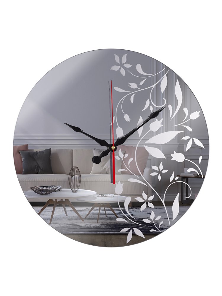 Создайте стильный акцент в интерьере с настенными часами d=39 см: зеркальный корпус и изящная цветочная тематика превращают функциональный предмет в дизайнерский элемент для дома, офиса или коммерческих помещений.