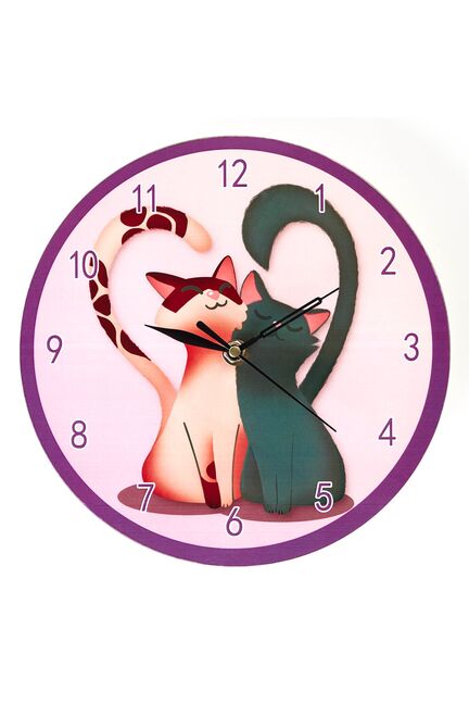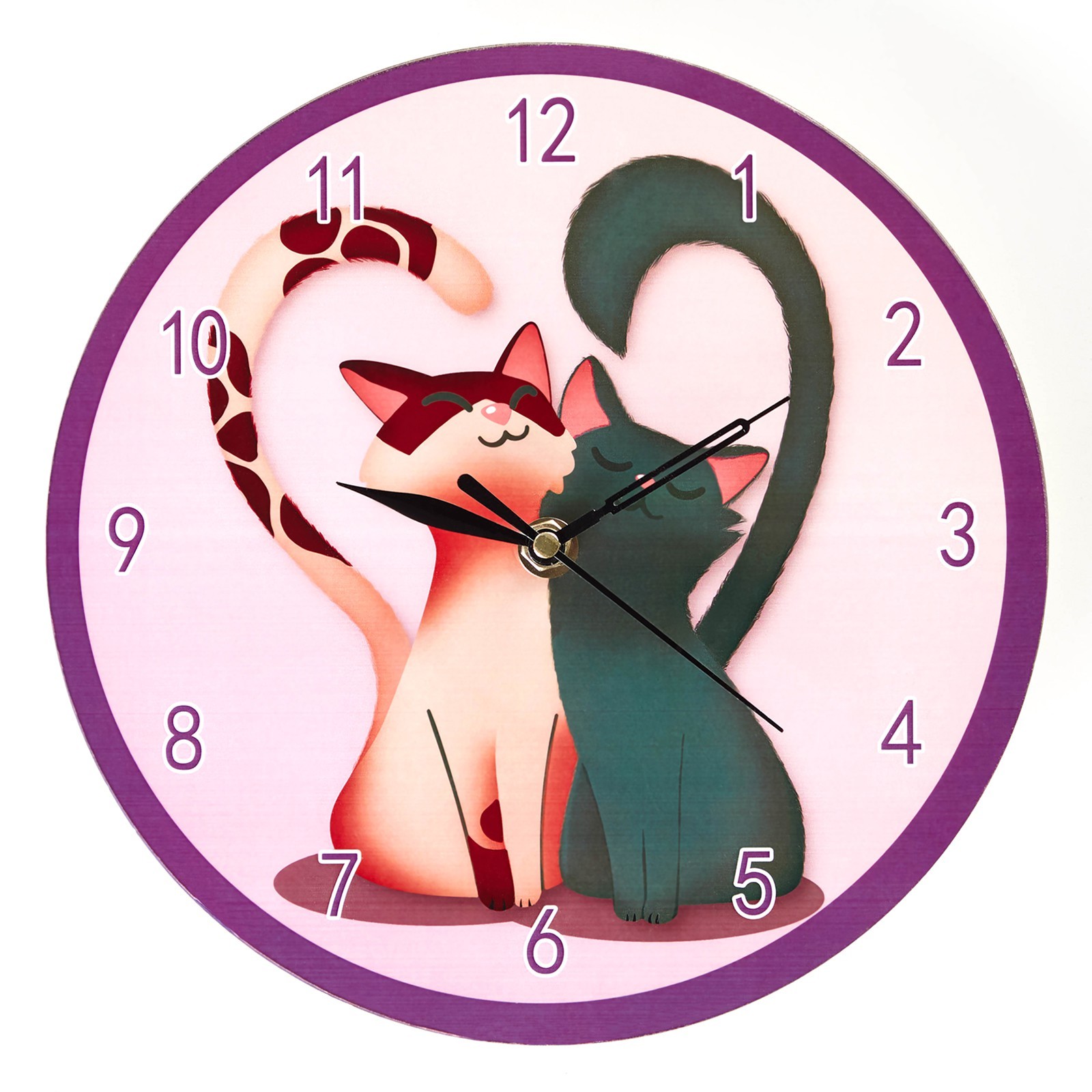 Яркие настенные часы d=23 см с рисунком котиков, тихий механизм, прочный пластик, четкие цифры — идеальны для детских и учебных помещений.