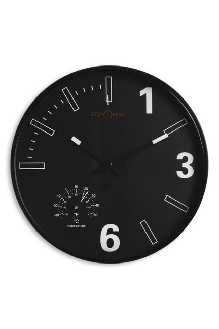 Функциональный аксессуар для дома, офиса, мастерской или производственного помещения — отличное решение для контроля времени и температуры. Модель оснащена крупным циферблатом (диаметр 30 см) с четкой разметкой и встроенным термометром, позволяющим быстро оценить микроклимат в помещении.