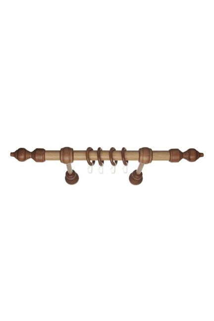 Комплектующие: стальная ламинированная труба d-28 мм, пластиковая фурнитура (кронштейны, кольца, крючки, наконечники), дюбели, саморезы. Карниз имеет индивидуальную упаковку. Пластиковый карниз 28 мм, длина 3 м, цвет "дуб", 1 ряд — подходит для любых штор, устойчив к влаге, легкая  установка и уход.