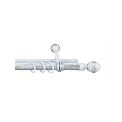 Двухрядный круглый карниз 2,4 м с белым покрытием и серебряной патиной идеально для классических интерьеров, прочный и подходит для любых штор.