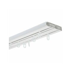 Комплектующие к карнизу: ПВХ-шина 2-х или 3-х полозная, крючки роликовые, стопоры. Карниз имеет индивидуальную упаковку Практичный потолочный карниз 3 м, три ряда, из износостойкого пластика, для комбинированного размещения штор и тюля. Комплект для легкой установки.