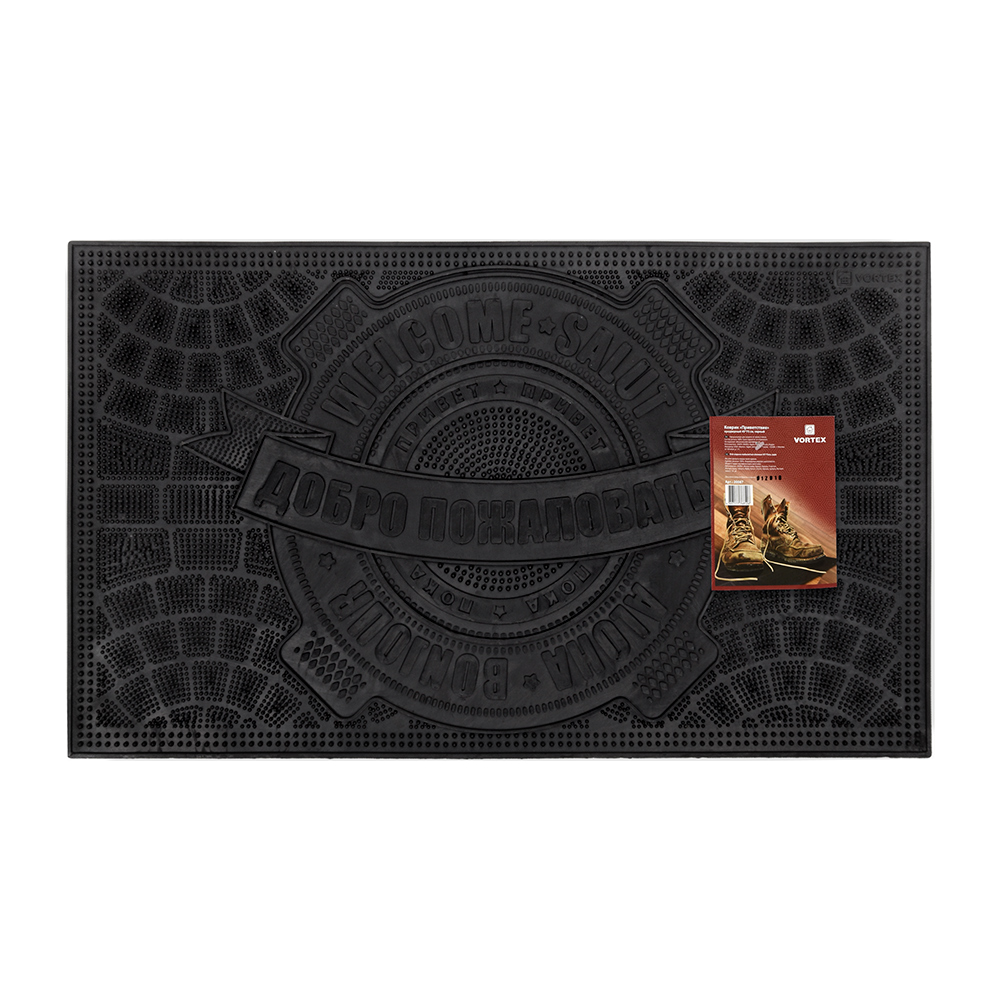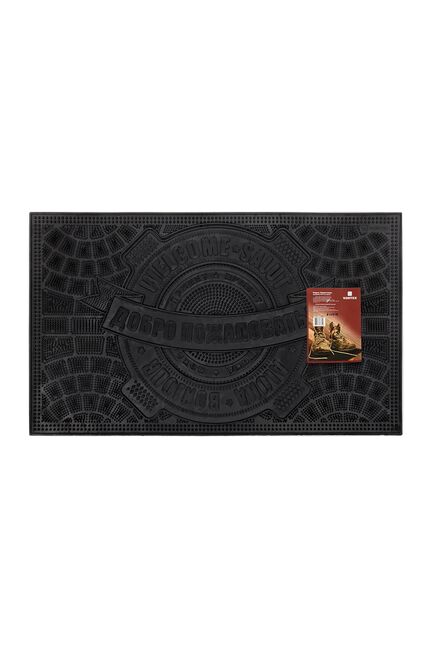 Практичный резиновый коврик 45×75 см с приветственным дизайном, эффективно задерживает грязь и влагу, легко чистится и не скользит.