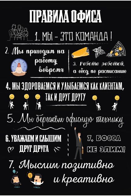 Постер-магнит (20*30) "Правила офиса", черный фон RM-0020 в Солнечный