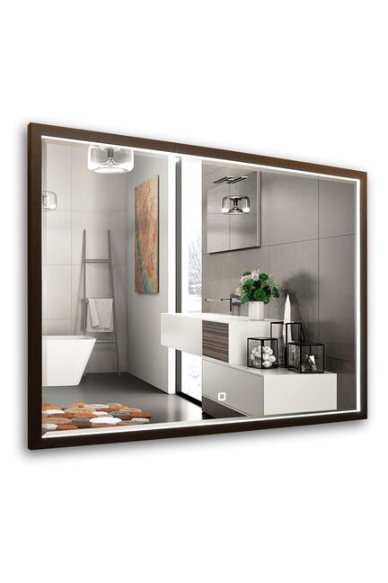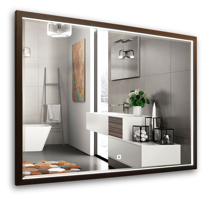 Стильное LED-зеркало 835×625 мм с сенсорным выключателем и подсветкой для ванной: яркий свет, влагостойкость, современный дизайн.