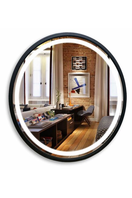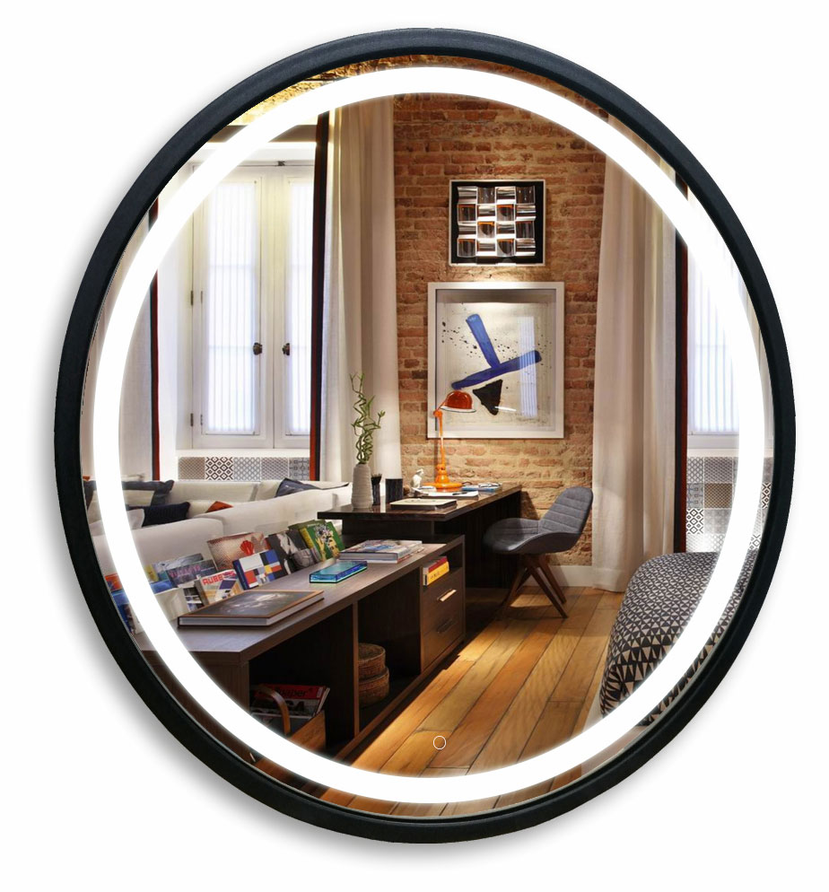 Гарантия: 2 года Материал рамы — пластик (цвет черный) Размер: 770 х 770 х 40 мм Крепление в комплекте Класс защиты — IP 44 Класс энергетической эффективности: А++ Подсветка — LED лента (цвет белый 6000К) Напряжение подключения — 220 Вт, 50Гц Влагостойкое, минимальные оптические искажения LED-подсветка выдерживает до 50 тыс. часов работы в непрерывном режиме Сенсорный выключатель С функцией плавного диммирования С запоминанием последнего значения Короткие касания светящейся области включают/выключают подсветку Длительное касание меняет яркость свечения AC/DC трансформатор Круглое LED-зеркало d770 мм с сенсорным включением и влагостойкой пластиковой рамой, подходит для ванной, легко монтируется и экономит электроэнергию.