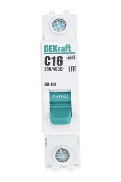 Автомат 16А, 1-полюсный, отключающая способность 4,5кА. Компактный, подходит для защиты линий в жилых и коммерческих помещениях.