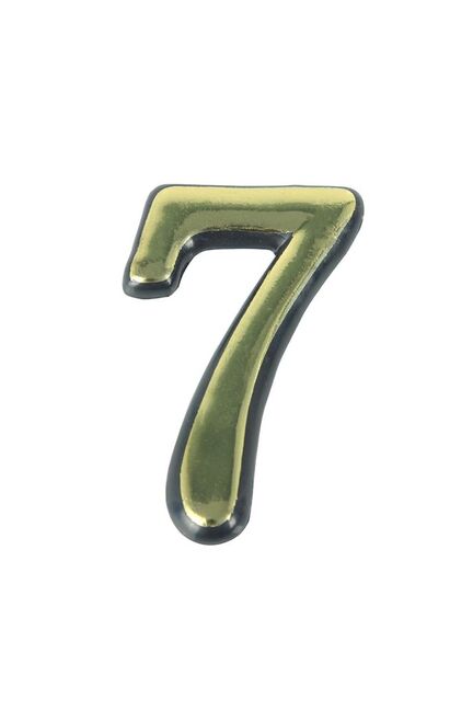 Металлическая цифра 7 в цвете золото, для дверей, устойчива к влаге и коррозии, высота 75 мм, комплект для крепления в наборе.