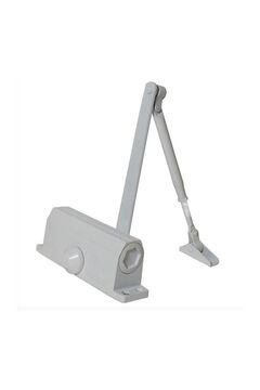 Регулируемый доводчик для дверей 40–65 кг, плавное закрытие, алюминиевый корпус, рабочий диапазон температур — от -35°C до +45°C, серебристый цвет.