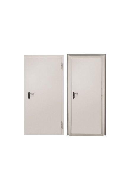 1. Противостояние огню и дыму 60 минут EIS60; 2. Полотно дверное, торцевая/угловая коробка, 1,0/1,5 мм 3. Замок врезной противопожарный 4. Ручки черного цвета с огнестойким покрытием нажимного действия 5. Уплотнитель от холодного дыма 6. Термоактивный уплотнитель 7. Наполнение – огнестойкая минеральная плита Противопожарная дверь EI60 1080×2080 мм, сталь, покрытие серый RAL 7035, обеспечивает защиту от огня 60 минут, устойчива к износу и коррозии.