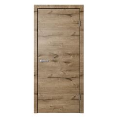 Практичное и стильное дверное полотно с ПВХ покрытием под дуб, устойчиво к износу и влаге, легко моется, подходит для большинства жилых и офисных помещений.