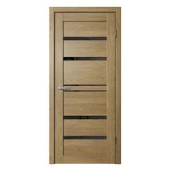 Современная дверь с черным закаленным стеклом и покрытием под дуб, ширина 800 мм, устойчива к царапинам, отлично подходит для межкомнатных проемов.