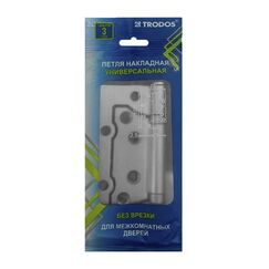 Универсальная петля с никелевым покрытием, без врезки, 100×75×2 мм, для дверей стандартного веса, защищена от коррозии и проста в установке.