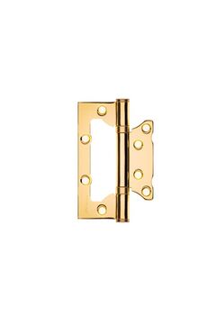 Универсальные накладные петли Apecs из стали, не требующие врезки в дверное полотно. Предназначены для деревянных межкомнатных дверей. Толщина карты 2 мм, высота 100 мм, ширина 63 мм. Макс. вес двери на 2 петли 20 кг. Универсальная стальная петля 100×63×2 мм с золотым антикоррозийным покрытием для долговечной и эстетичной установки дверей без врезки.