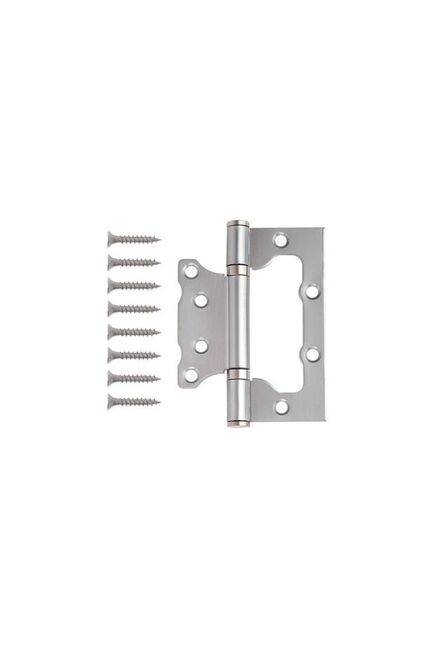 Стальная петля без врезки 100×75×2,5 мм, хром, универсальная, устойчива к коррозии, проста в установке, подходит для межкомнатных и входных дверей.