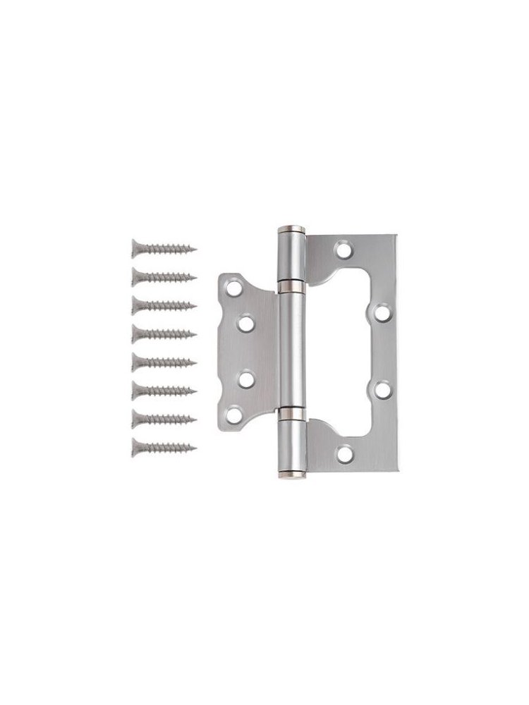 Идеальный выбор для современных межкомнатных и входных дверей – прочная и эстетичная дверная петля из стали с долговечным гальваническим покрытием в цвете хром. Плавный ход, без выступающих частей, повышенная износостойкость и безопасная установка без врезки гарантируют простоту и скорость монтажа. Петля подходит для интенсивно используемых помещений благодаря качественной стали толщиной 2,5 мм и рабочему размеру 100×75 мм, оптимально распределяя нагрузку и защищая полотно от провисания.