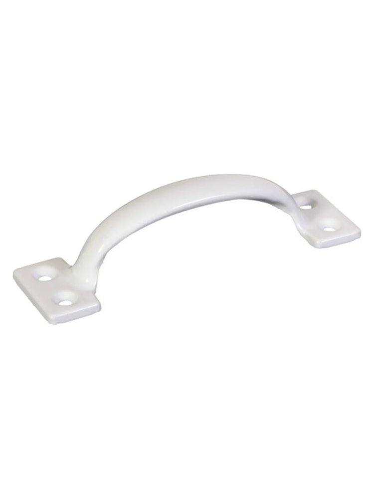 Металлическая скоба 90 мм, прочная, белого цвета, устойчива к износу и коррозии, легко монтируется, подходит для дверей, мебели и окон.