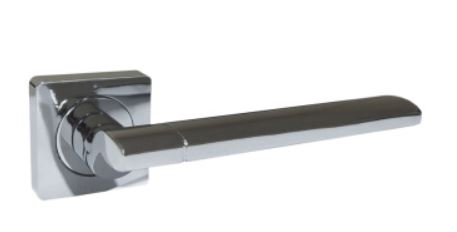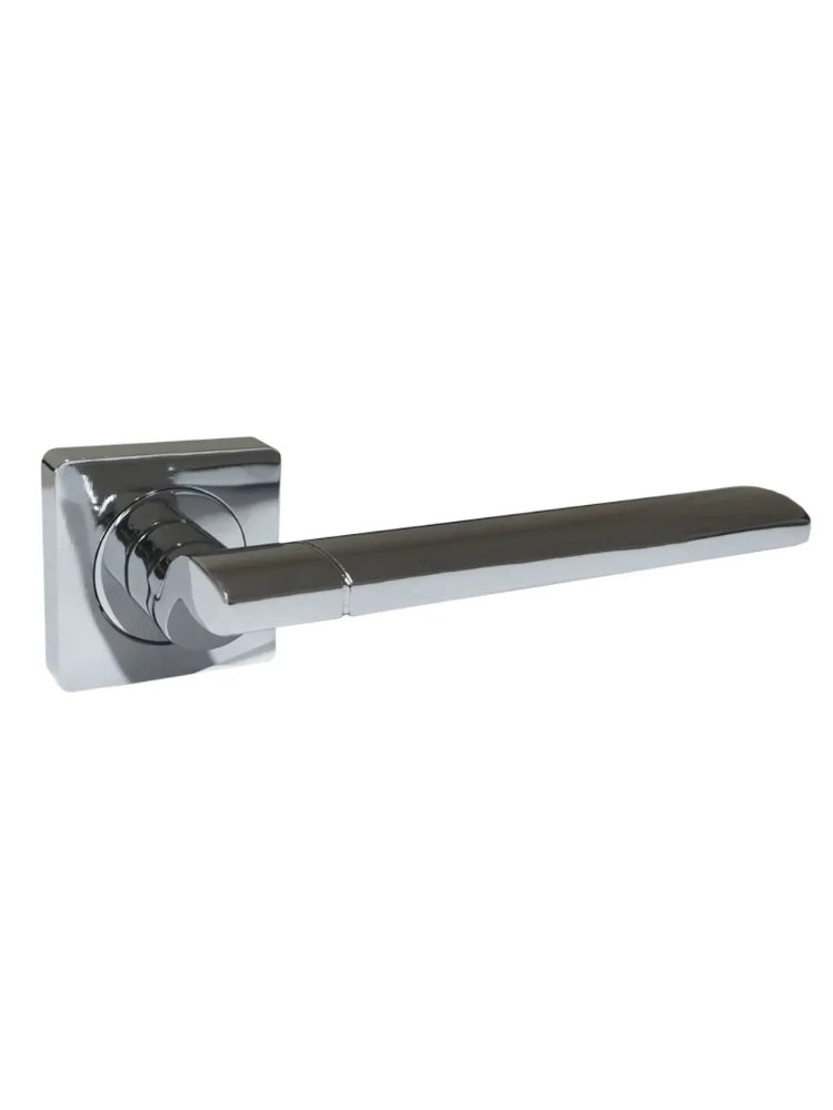 Ручка из алюминия с хромированным покрытием, устойчивая к износу и коррозии, подходит для межкомнатных дверей толщиной 35–45 мм.