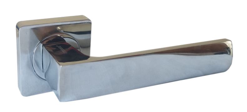 Современная хромированная ручка, устойчива к износу и коррозии, подходит для межкомнатных дверей толщиной 35–45 мм, легко устанавливается.