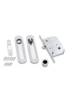 Эргономичный комплект для раздвижных дверей с овальными ручками и замком в сатиновой отделке — для уюта, приватности и стильного интерьера.