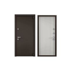 Внешнее покрытие: порошково-полимерное. Толщина полотна 80 мм, глубина короба 105 мм. Толщина стали (полотно, короб): 1,2 мм. Внутренняя отделка: МДФ-панель 10 мм, молдинг чёрный. Наполнение: базальтовая плита. Уплотнение: 2 контура. Основной замок: Гардиан цилиндровый (ключ-вертушка). Дополнительный: Гардиан сувальдный (ключ-ключ). Металлическая дверь с эффектным двусторонним декором, усиленной защитой, отличной тепло- и шумоизоляцией для квартиры или дома.