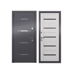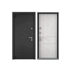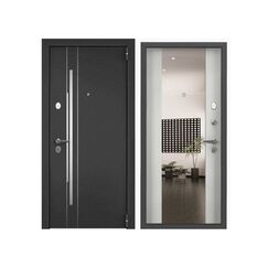 Тип внешней отделки: порошково-полимерное покрытие. Магнитный уплотнитель по контуру полотна. Многослойный шумоизоляционный материал. Верхний замок: Border 3B 8-6, 4-го класса взломостойкости. Нижний замок: Blockido C1, 4-го класса взломостойкости. Стальная дверь с утеплением, защитой от шума и взлома, современным дизайном и прочной отделкой для квартир и офисов стандартных размеров.