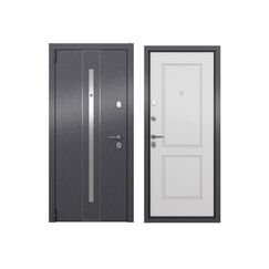 Тип внешней отделки: порошково-полимерное покрытие. Тип внутренней отделки: панель МДФ с ПВХ покрытием. Верхний замок: BORDER 3В 8-8Г/15, 4-го класса взломостойкости по ГОСТ 5089-2011. Нижний замок: Crit A30-4Л, 2-го класса вломостойкости по ГОСТ 5089-2011. Декоративные накладки на ключевину сувальдного замка с направляющими для ключа и подпружиненными шторками от продувания. Противосъемные ригели с петлевой стороны полотна 2 шт. Ночная задвижка. Металлическая дверь, терморазрыв, отличная тепло- и шумоизоляция, защищает от взлома, стильная отделка, размер 950×2050 мм, для дома и офиса.