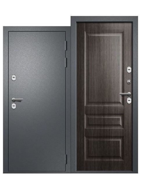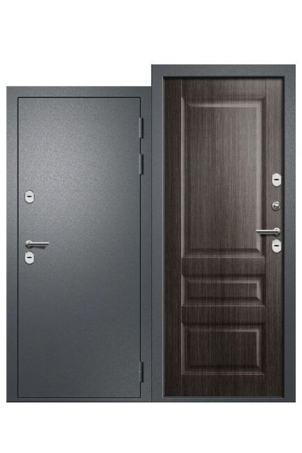 Производитель: Ретвизан. Внешнее покрытие: трехслойное полимерное покрытие «Букле черный». Внутреннее покрытие: фрезерованная влагостойкая с рисунком МДФ 16 мм. Толщина дверного полотна: 110 мм. Глубина дверного короба: 145 мм. Толщина металла: 1,4 мм. Терморазрыв: терморазрыв на коробе и полотне. Внутреннее наполнение: экструдированный пенополистирол. Уплотнитель: 3 контура, специализированный дверной уплотнитель. Замки: 2шт, BORDER сувальдный. Ночная задвижка: есть. Эксентрик: есть, для регулировки прижима полотна. На основном замке металлический эксцентрик для защелки, пластиковый - для ригеля замка. Ручка: раздельная, цвет - хром. Накладки: овальные с защитой от сквозняков. Глазок: есть. Противосъем: штыри, 3шт. Петли: 3шт., наружные, осевые, открывание 180°. Тёплая входная дверь с терморазрывом для частных домов — высокие шумо- и теплоизоляция, прочность и стиль для надежной защиты и уюта.