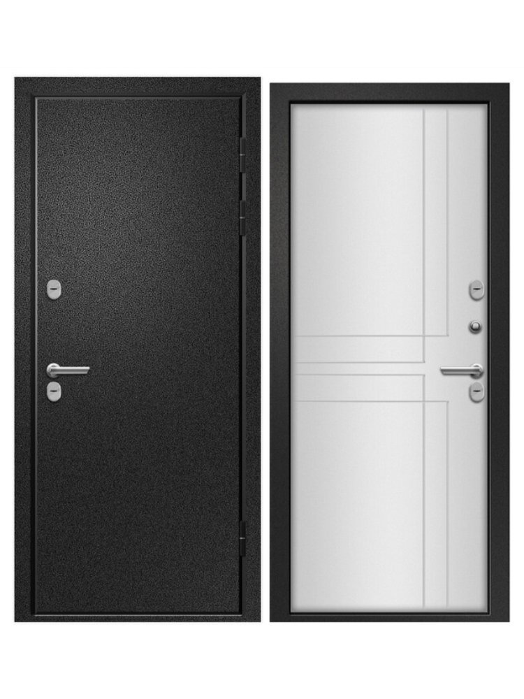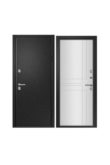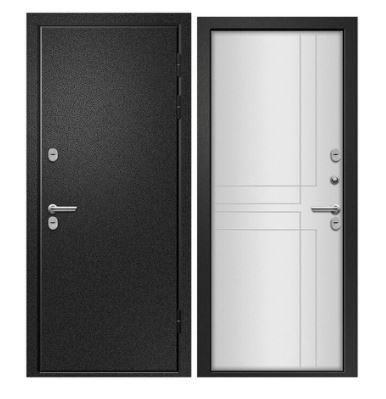 Петли - евро 3 шт.Размеры 960х2050. Производитель Фабрика «Ретвизан». Толщина полотна - 120 мм. Глубина коробки - 160 мм. Внешнее покрытие трехслойное полимерное покрытие Букле черный. Внутреннее покрытие МДФ 16 мм с фрезерованным рисунком. Толщина металла 1,4 мм. Наполнение экструдированный пенополистирол. Уплотнитель 3 контура (1 магнитный). Основной замок BORDER 3В 9-6Г (сувальдный). Дополнительный замок BORDER ЗВ 8-6/Б5Т (сувальдный). Броненакладка - есть. Ночная задвижка - есть. Фурнитура хром. Терморазрыв на полотне и коробке. Нержавеющий порог - да. Теплоизоляционная входная дверь, устойчивая к морозу и влаге, с антивандальным покрытием, в стильном дизайне, для частного дома.