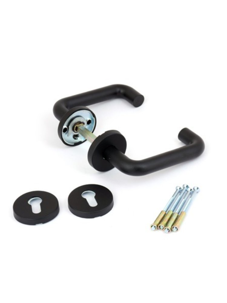 Раздельные ручки H-0203-BL обеспечивают комфорт использования межкомнатных и входных дверей в квартирах, домах и офисах благодаря эргономичной форме и прочному исполнению. Идеально подходят для установки в дверные полотна толщиной от 35 до 45 мм, легко собираются и прекрасно сочетаются с современным интерьером.