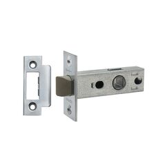 Врезная защелка с фиксацией, пластиковый корпус, хром, легкая установка, подходит для санузлов и межкомнатных дверей, надежна и долговечна.