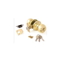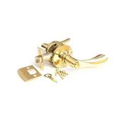 Надёжная защёлка-ручка с ключом и фиксатором в золотом цвете для межкомнатных дверей, проста в установке и устойчива к износу.