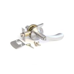 Никелированная металлическая защёлка с ключом и фиксатором: универсальна, устойчива к износу, проста в монтаже, идеально для межкомнатных дверей.