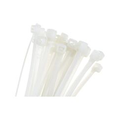 Белые нейлоновые стяжки 2,5×200 мм для крепления кабелей и жгутов. Прочность, удобство монтажа, рабочий диапазон температур –40…+85°C, 100 шт.