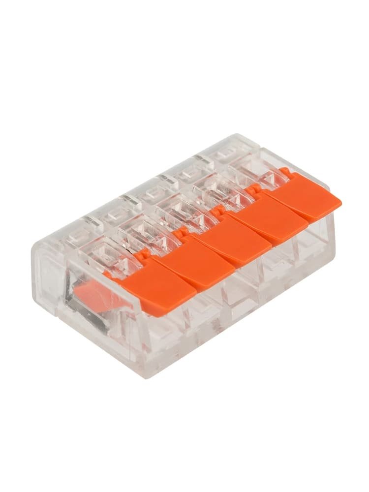 Быстрая и безопасная работа с электропроводкой: компактная клемма идеально подходит для соединения от 1 до 5 проводов сечением от 0,14 до 4 мм², что делает её универсальным решением для монтажных и ремонтных работ в быту, строительстве, освещении и низковольтных сетях.