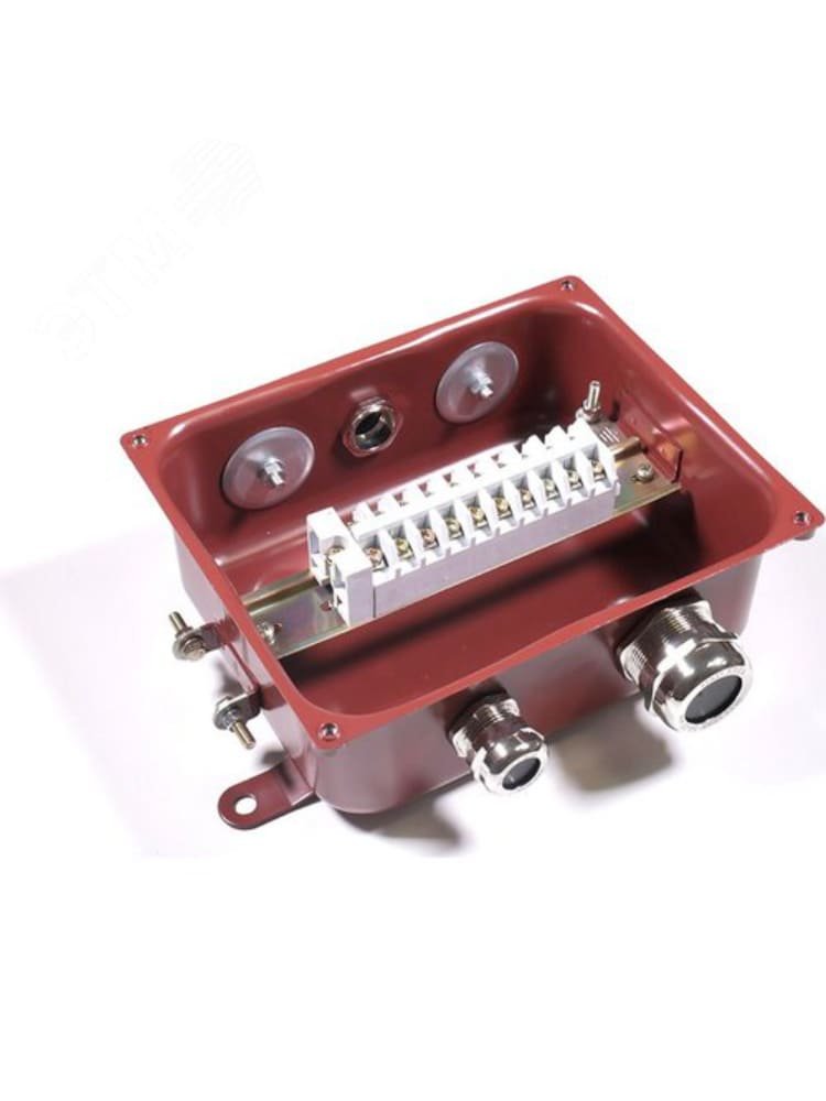Клеммная коробка с наборными зажимами, латунными сальниками,; сечение жил до 4 кв.мм; Количество зажимов: 10 шт; Номинальный ток до 25A; Материал изготовления: оцинкованная сталь; Покрытие: грунтовое; Напряжение переменного тока: 660 В; Напряжение постоянного тока: 440 В; Климатическое исполнение: У 2; t-раб.-40…+60°С; IP54; Тип вводов: Ввод-пирамидка PVC; Параметры вводов: М25 (8-16мм) х2, М32 (14-25мм) х1; Заглушка: 2 шт; размеры 212х238х100 мм Коробка с наборными зажимами IP65, латунный ввод, защита от влаги и пыли, надежность для быстрых и безопасных электромонтажных работ.