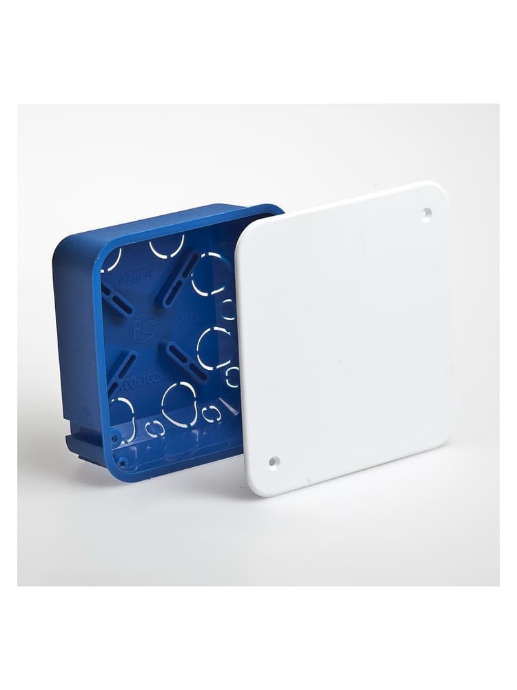 Прочная монтажная коробка 100×100×45 мм для полых стен, устойчивая к перегреву и влаге, обеспечивает быстрый и безопасный монтаж электросетей.