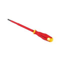 Отвертка диэлектрическая, шлицевая Подходит для работы под напряжением до 1000 В. Изолированная, шлиц 4,0 мм, длина 100 мм, прочная сталь, эргономика для максимальной безопасности.