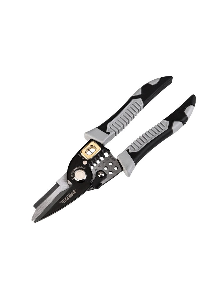 Многофункциональный кабелерез 5 в 1 предназначен для выполнения различных электромонтажных работ. Рукоятки эргономичной формы снижают усталость при длительном использовании. Прорезиненное покрытие гарантирует надежный захват и предотвращает скольжение. Для удобства хранения предусмотрен специальный фиксатор закрытого положения. Функции: 1. Ножницы с кабелерезом 2. Резак для зачистки изоляции 3. Стриппер для снятия изоляции провода сечением от 2 до 6 мм² 4. Разделитель жил 5. Скрутка жил Многофункциональный кабелерез 200 мм: идеально режет кабели до 12 мм, удобная эргономика, надежность и долговечность для любых задач.