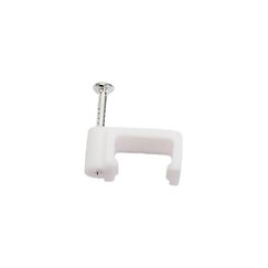 Плоская скоба 6 мм для крепления кабеля: прочный пластик, оцинкованный гвоздь, 100 шт. в упаковке, быстрый и безопасный монтаж.